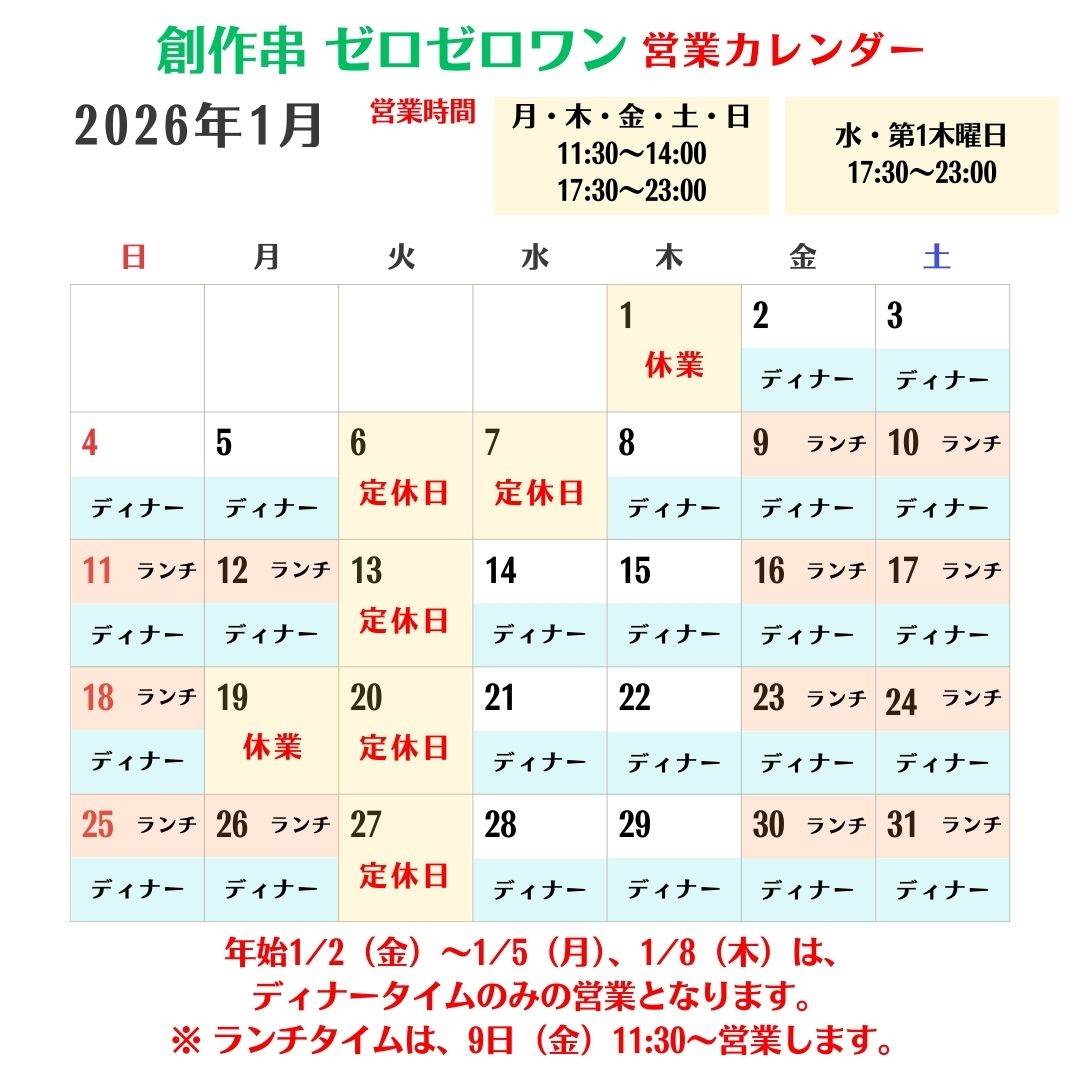 本年も創作串揚げゼロゼロワンをどうぞよろしくお願いいたします。